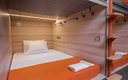 Просторная капсула, матрас и бельё для которой изготовлены известной фабрикой, популярной у традиционных отелей. Подходит индивидуальным путешественникам и всем, кто ценит уединение и быстроту передвижения.