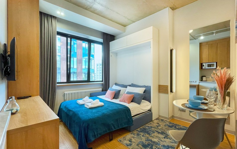 Апартаменты «Гостим тут» номер Reef Glow расположены в жилом комплексе премиум-класса «Искра-Парк» в Москве, вблизи делового центра и с удобной транспортной доступностью. В шаговой доступности находятся бизнес-центр «Искра Парк», два парка и спортивные объекты, магазины, кафе и рестораны, а также станции метро «Динамо».