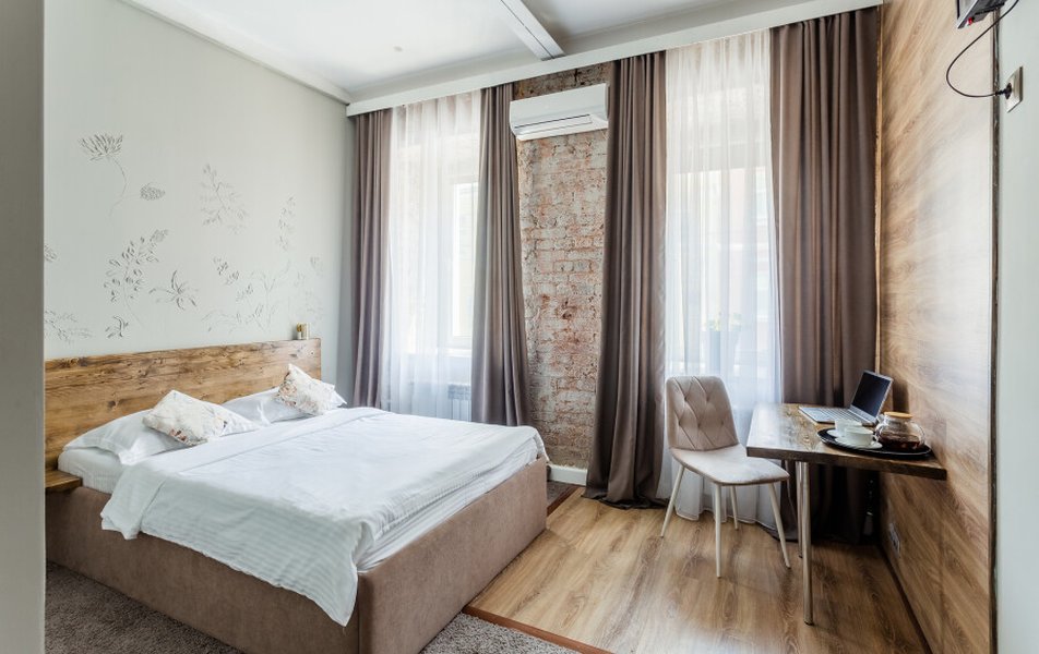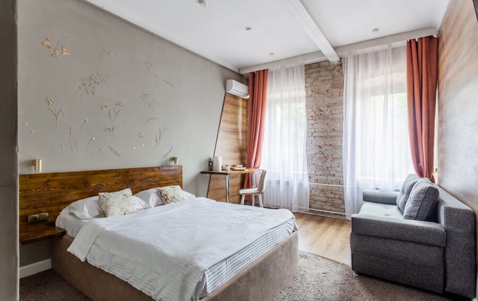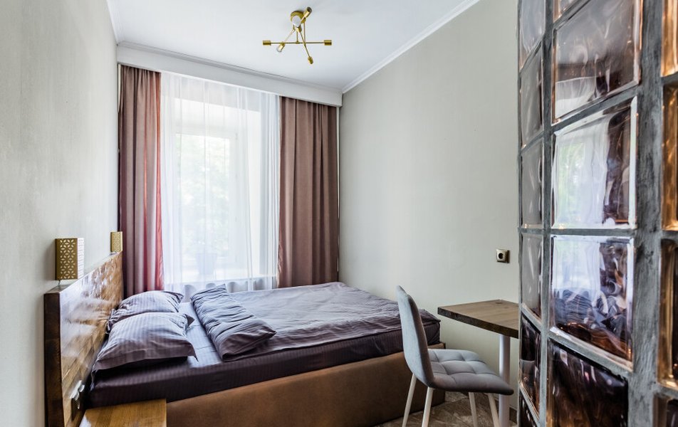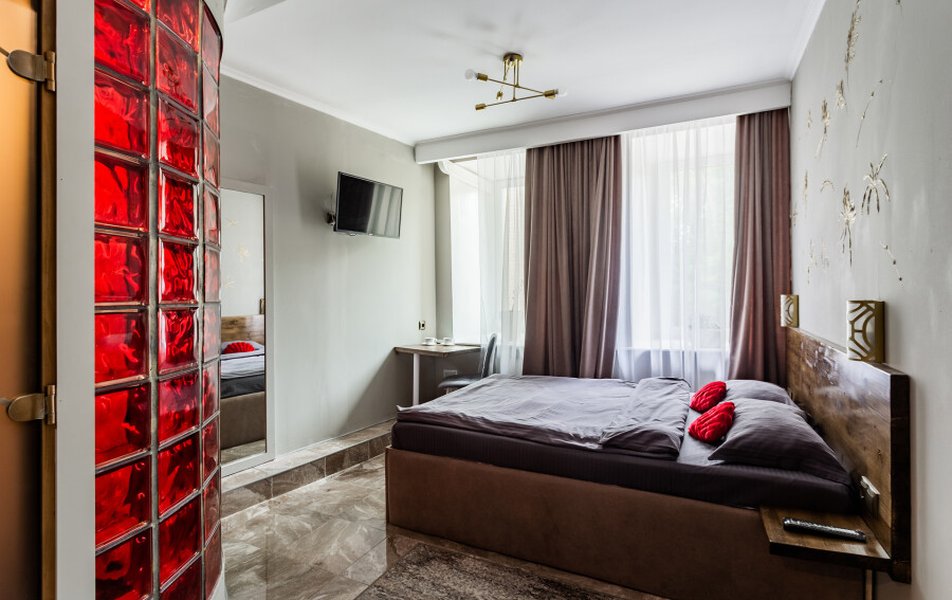 Гостиница размещена в отдельном корпусе жилого здания на первом этаже с собственным входом, без лифта. Номера оснащены санузлом, телевизором, кондиционером, холодильником, чайником, феном и современной мебелью, в апартаментах предусмотрена кухня для самостоятельного приготовления пищи. Интерьер отличается повышенным комфортом с большими окнами и возможностью выбора цветовой гаммы.
