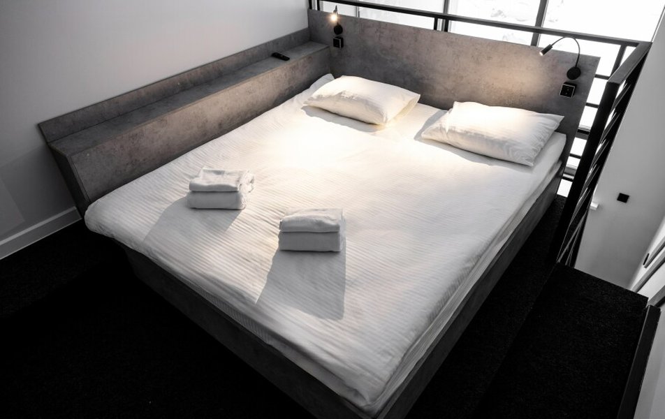 На первом этаже отеля расположены компактные двухместные номера, оснащённые всем необходимым для комфортного проживания. Для гостей, планирующих более длительный визит или ценящих дополнительное пространство, предназначены номера на втором этаже. Особенностью этих номеров является двухуровневая планировка, где спальная зона находится на верхнем ярусе, что создаёт ощущение отдельной комнаты. Они также оборудованы кухонным уголком с индукционной плитой и всей необходимой бытовой техникой.