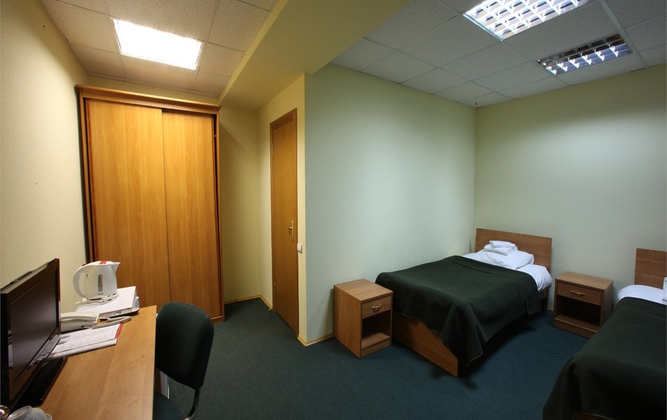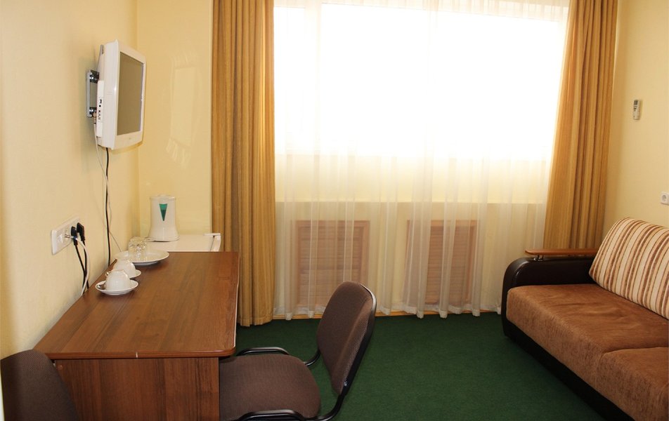 16-ти этажное здание отеля, оснащенное лифтами, возвышается в тихом переулке. Номерной фонд рассчитан на 370 мест. Гостей ожидают комфортабельные номера категории Эконом и Стандарт с собственной ванной комнатой, и категории Бюджет с общим санузлом. В каждом номере есть холодильник, электрочайник, двуспальная или односпальные кровати. На 1-м этаже отеля работает кафе «Кампа», где отдыхающие могут заказать себе блюда европейской кухни.