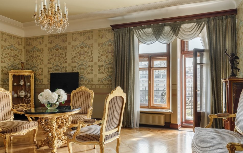 Один из самых впечатляющих залов отеля, оформленный в стиле русского модерна. Красота здесь заключена в каждой детали: растительный орнамент на потолке авторства Сергея Чехонина, люстры ручной работы в виде решетчатого круга и ажурной чаши, позолоченные канделябры — все это придает залу торжественный и изысканный вид. С балкона зала «Савва Морозов» открывается самый красивый вид на главный зал отеля — «Метрополь».