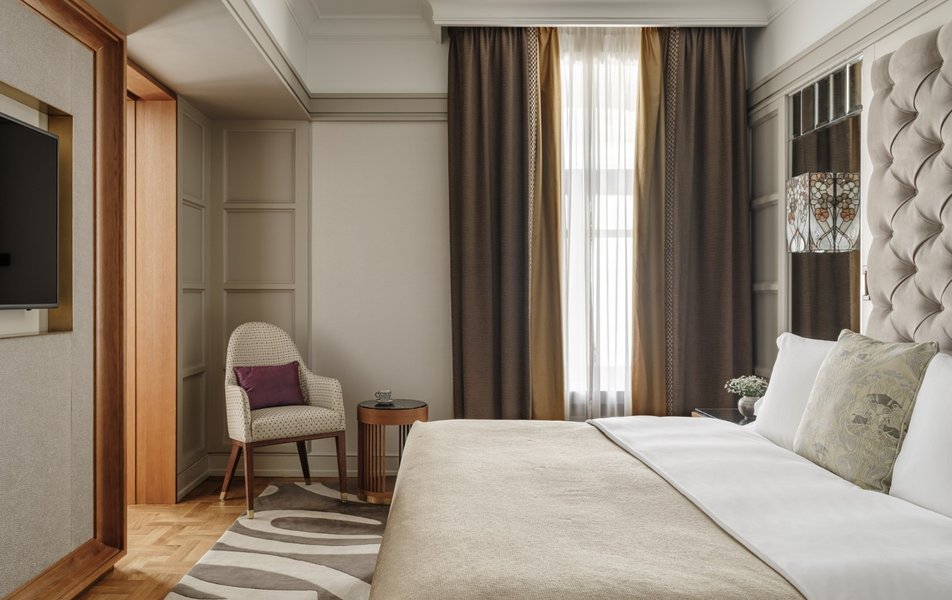 Категория номера представлена в отеле тремя вариантами размещения: уютные однокомнатные номера с альковом, просторные однокомнатные, а также номера с двумя небольшими комнатами.