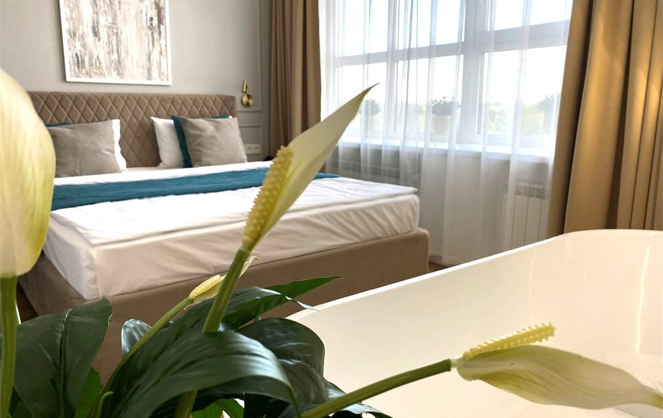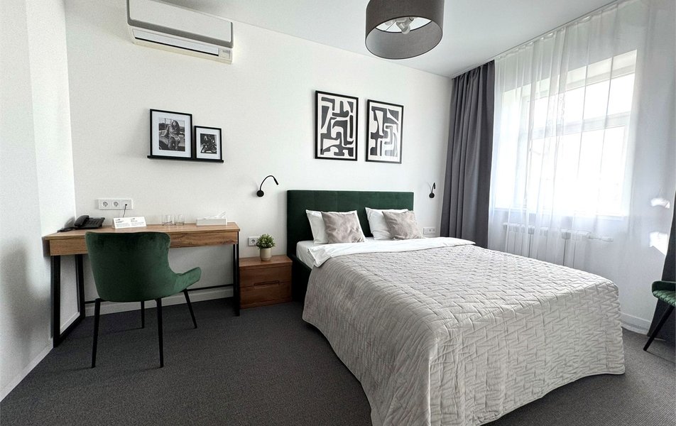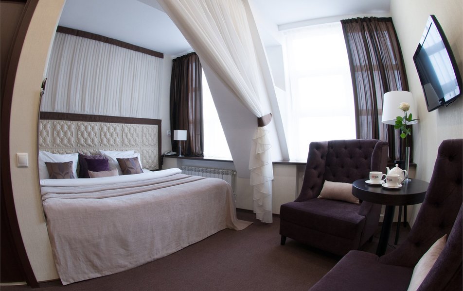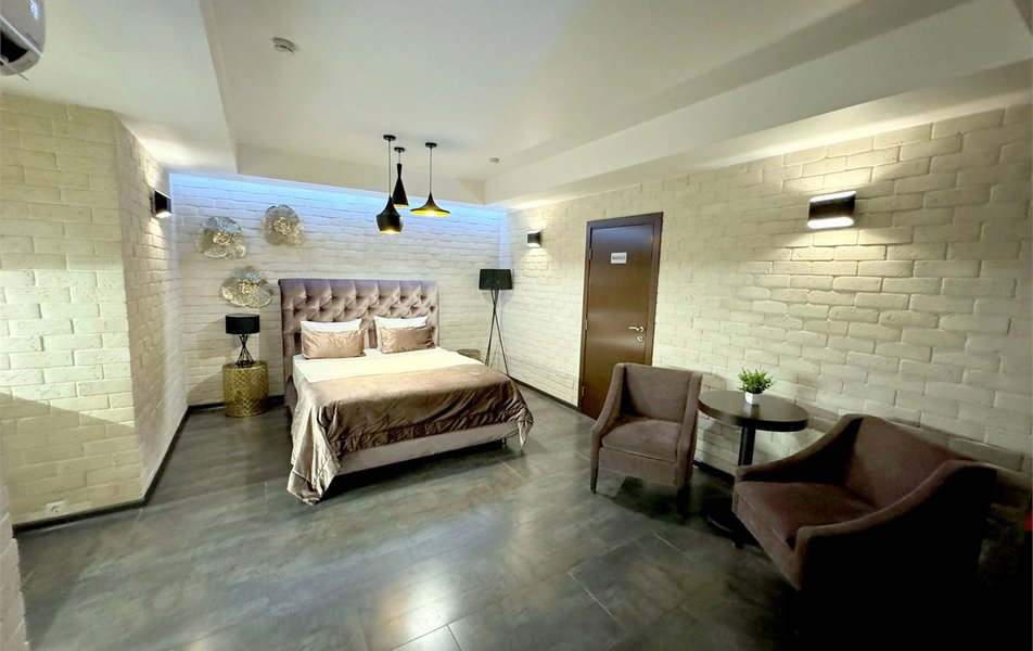 Отель предлагает номера разных категорий, каждый с индивидуальным дизайном. В номерах есть мебель, плазменный телевизор, собственный санузел с душевой.