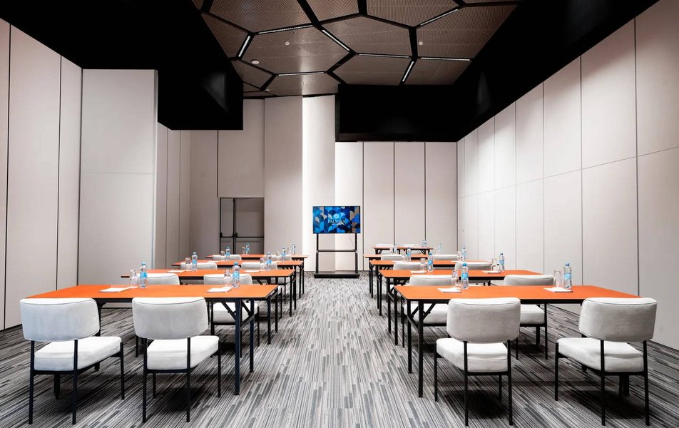 Отель Palmira Art Hotel в Москве предлагает премиальные условия для подготовки и проведения престижных бизнес-встреч, важных переговоров, имиджевых и корпоративных событий, частных торжеств, роскошной свадьбы. На территории отеля создан уникальный деловой кластер и мощная инфраструктура для мероприятий, позволяющие проводить параллельно несколько конференц-мероприятий с сохранением камерности и эксклюзивности. Доступна аренда объединенного конгресс-холла или бронирование отдельных зон. Профессиональная поддержка персонального менеджера позволит предусмотреть все детали: будет выбрана оптимальная площадка и рассадка участников, организовано оформление зала и приветственной зоны с закусками и напитками. Менеджер отеля поможет забронировать номера для размещения гостей и кастомизировать меню на корпоративные, свадебные или другие частные банкеты в соответствии с вашими пожеланиями.