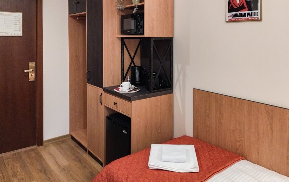 | Оборудование | микроволновая печь мини-холодильник набор посуды сейф телевизор чайник |