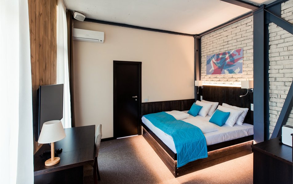 Отель, расположенный в ТЦ Глобал-Молл, предлагает гостям уютные номера разных категорий, оформленный в стиле лофт. В номерах «Люкс» предусмотрена система дистанционного управления «Умный дом». Во всех номерах: дизайнерская мебель, кондиционер, телевизор, электрочайник, чайная станция, небольшой холодильник, сейф, музыкальная станция. В ванных комнатах установлена душевая кабина, раковина, зеркало, унитаз, имеется косметика для душа и фен.
