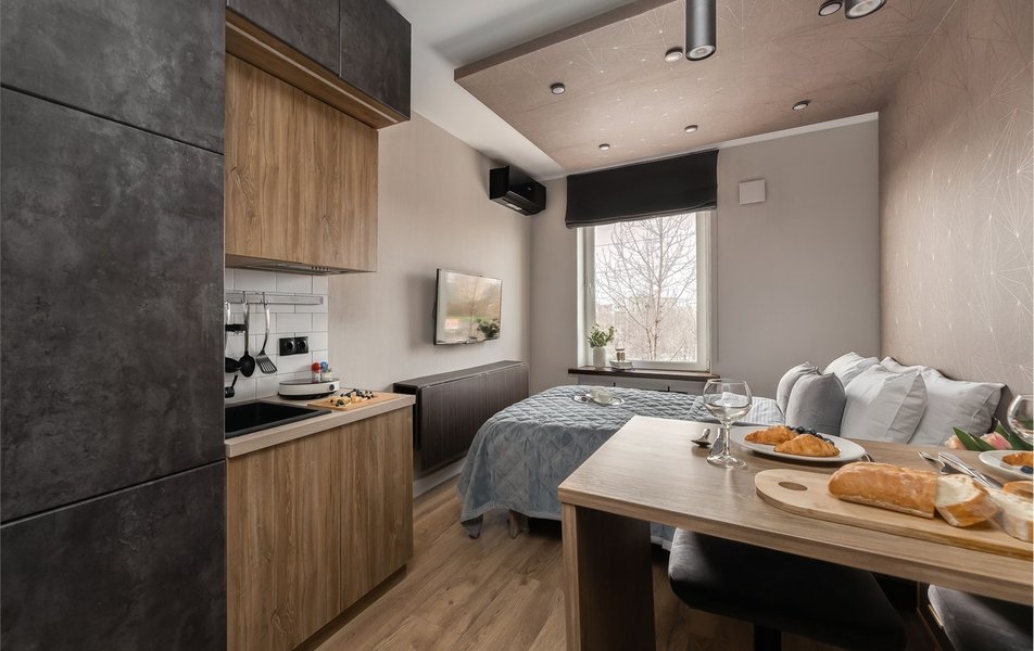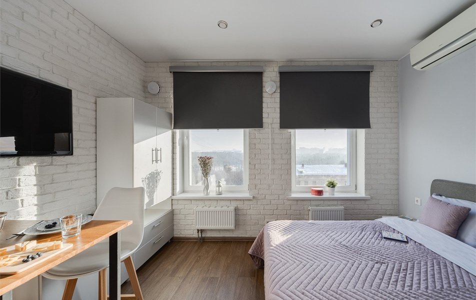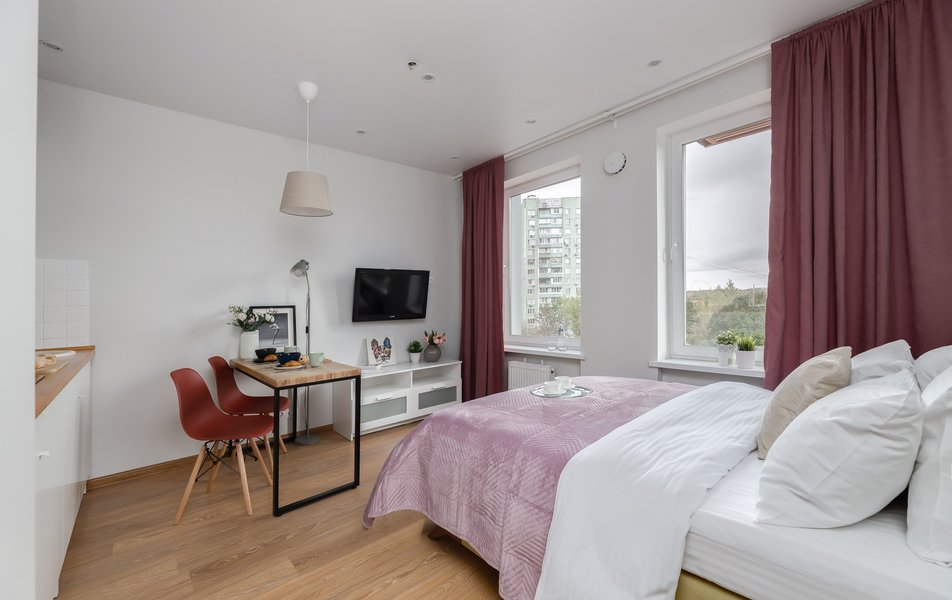 Современные апартаменты оснащены всем необходимым: стиральной машиной, плитой, холодильником, Smart TV и высокоскоростным Wi-Fi. В распоряжении гостей фен, утюг, полный набор посуды, чайник и микроволновая печь. Во всех апартаментах, за исключением Grey, имеется кондиционер.