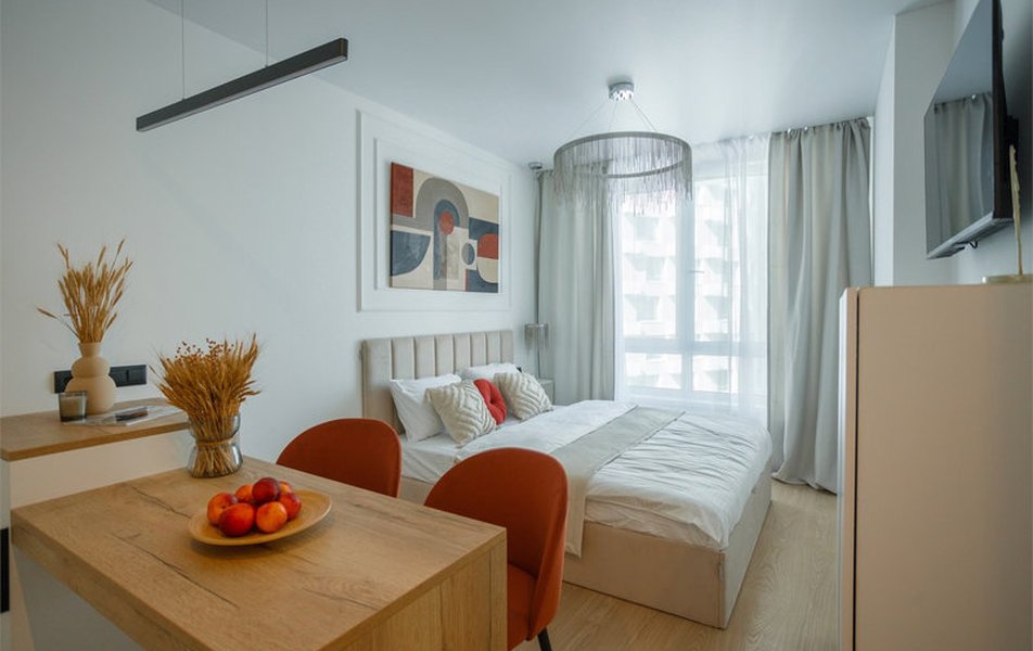 В апартаментах есть все для комфортного проживания: полностью оборудованная кухня (включая посуду, столовые приборы, чай, кофе, сахар, соль и приправы), стиральная и посудомоечная машины, Smart-TV, кондиционер (за исключением апартаментов Flamandia и Meridian) и бесплатный Wi-Fi. В 150 метрах от ЖК находится платная городская парковка (40 руб./час). На первом этаже ЖК работают магазины «Пятёрочка», «Магнит», «Вкусвилл», кафе «Гнездо финиста», «Кофе Хауз» и другие заведения.