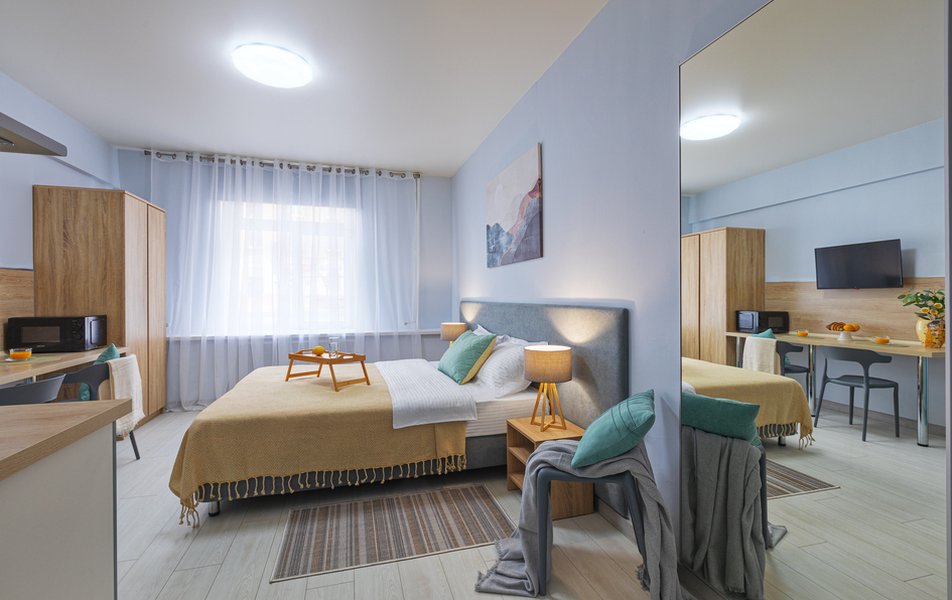 Апартаменты без стойки регистрации, просьба при бронировании указывать актуальный телефон туристов. Накануне заезда обязательно согласовать с администратором время заселения по телефону указанному в ваучере.
