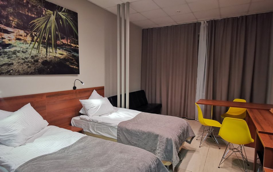 Номерной фонд представлен 58 уютными и доступными по цене номерами современного дизайна. Каждый оснащён отдельной душевой комнатой. Интерьеры продуманы так, чтобы сочетать комфорт, функциональность и лёгкую атмосферу городского отдыха.