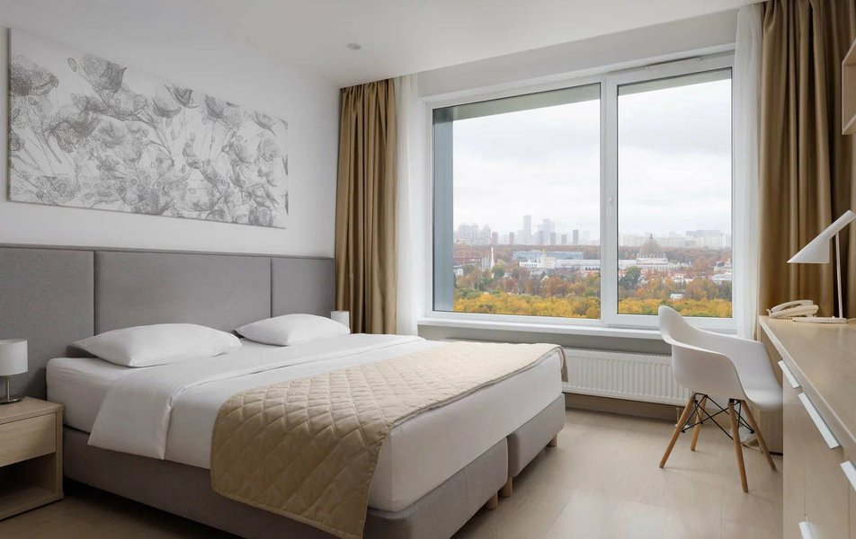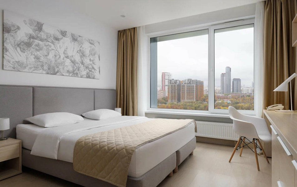 В номерах могут разместиться до 5 человек. В распоряжении гостей двуспальная кровать, в качестве дополнительных мест выступают раскладные диваны. Также в номерах предусмотрены: кондиционер, телевизор и утюг. Полотенца и постельное белье также предоставляются проживающим. Ванная комната укомплектована туалетными принадлежностями и средствами гигиены. На кухне есть все необходимое для самостоятельного приготовления пищи. На территории есть лаундж-зона, лобби-бар и ресторан с разнообразием блюд и напитков.