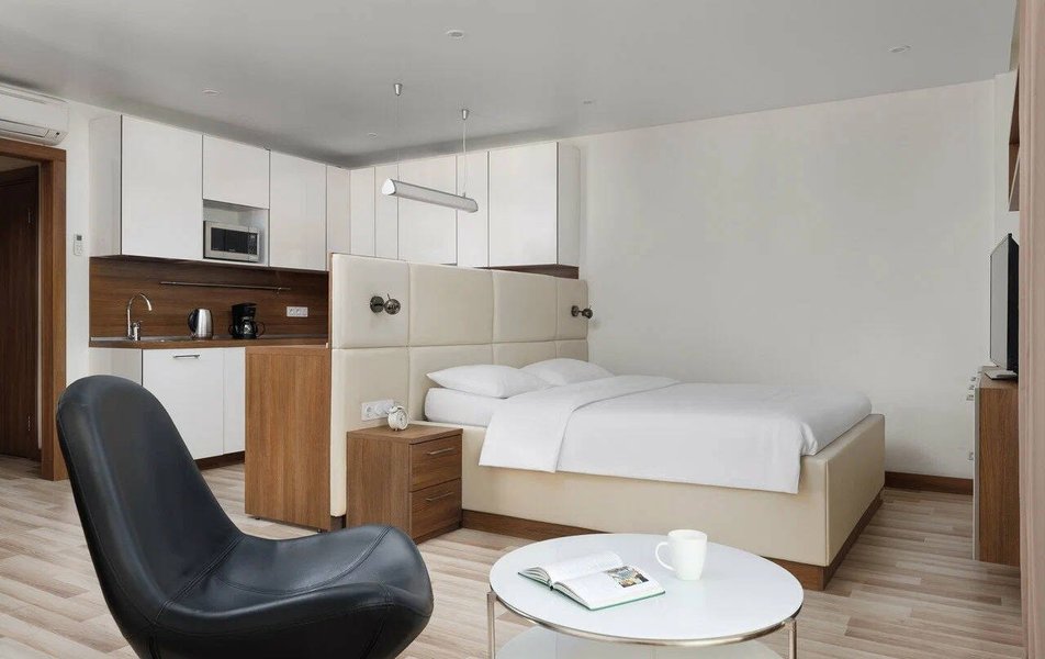 Для комфортного проживания гостей предусмотрены стильные и уютные двухместные апартаменты, оформленные в классическом стиле. В распоряжении гостей собственная ванная комната с полным набором средств личной гигиены и феном. В номере также есть ЖК-телевизор и Wi-Fi, который работает на всей территории. Чтобы приготовить завтрак, обед или ужин, гости могут воспользоваться кухонными приборами, такими как варочная поверхность, холодильник и микроволновая печь.