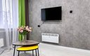 Внутри гостей ждут два просторных спальных места: двуспальная кровать размером 160×200см с ортопедическим матрасом и двуспальный диван‑ кровать (150×200см). Апартаменты оснащены всей необходимой техникой: холодильником, посудомоечной и стиральной машинами, микроволновой печью, варочной панелью и чайником. На кухне есть все нужные принадлежности для приготовления блюд, а для комфорта предусмотрены утюг с гладильной доской, пылесос, сушилка для белья и электросушилка для обуви. В ванной комнате гостям предоставляются шампунь и гель для душа, а также комплект полотенец. К услугам постояльцев чистое хлопковое бельё, скоростной Wi‑Fi и телевизор.