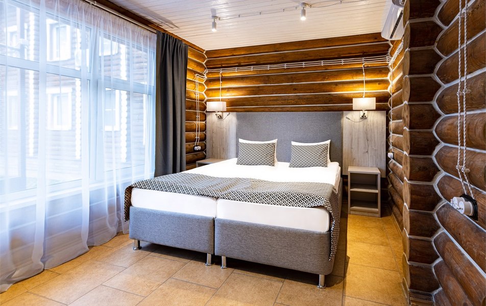 Гости могут поплавать в крытом бассейне, прогуляться по лесным тропам с питомцем или просто созерцать природу с балкона светлого корпуса из дерева.