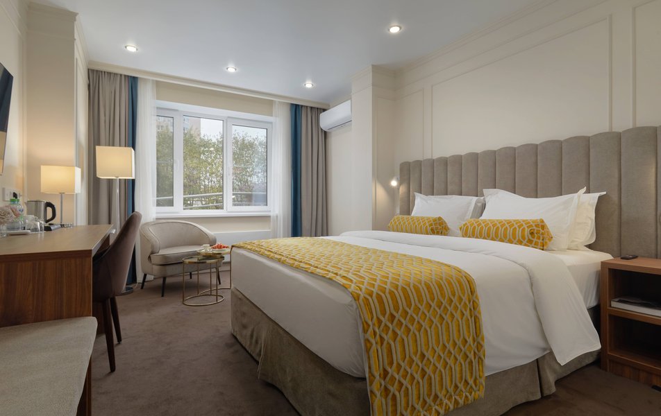 Отель находится в жилом 17-этажном доме, оснащенном лифтом. Гостей ожидают однокомнатные номера категории Комфорт, Стандарт, Делюкс, Семейный. В номерах стильный лаконичный интерьер с яркими цветовыми акцентами. В каждом есть собственная ванная комната и вся необходимая бытовая техника — кондиционер, телевизор, мини-холодильник.