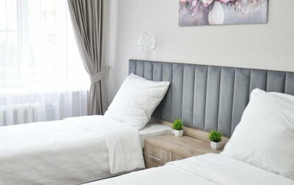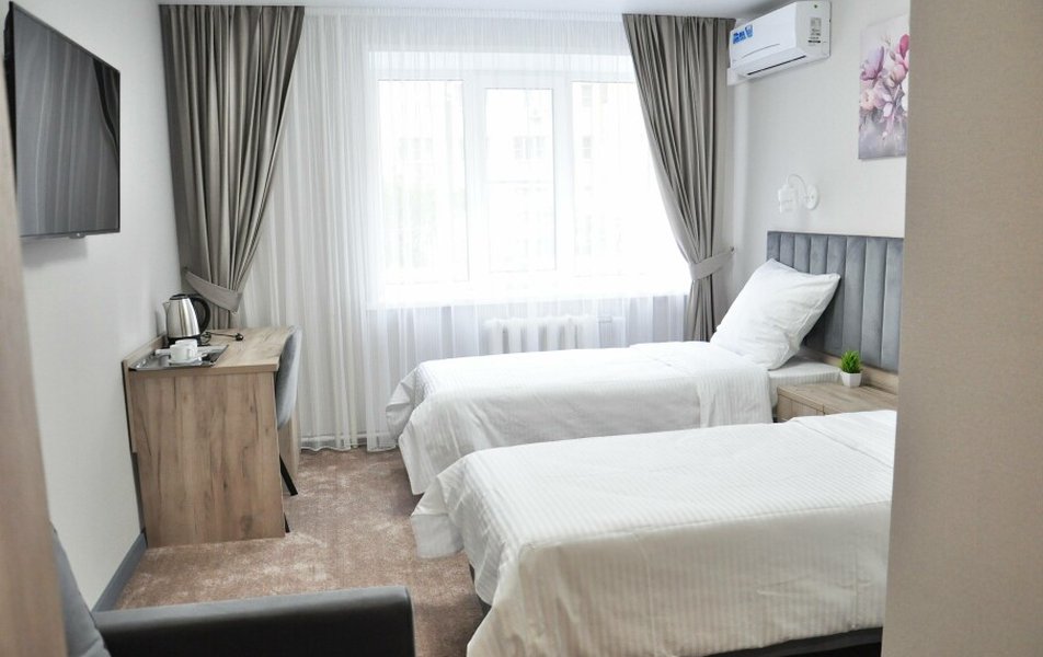 Для размещения предлагаются номера разной вместимости, оформленные в светлых тонах с акцентом на функциональность. В каждом есть кровати, шкаф для одежды, телевизор и зона отдыха. Санузел — в зависимости от категории номера, с душем или ванной.