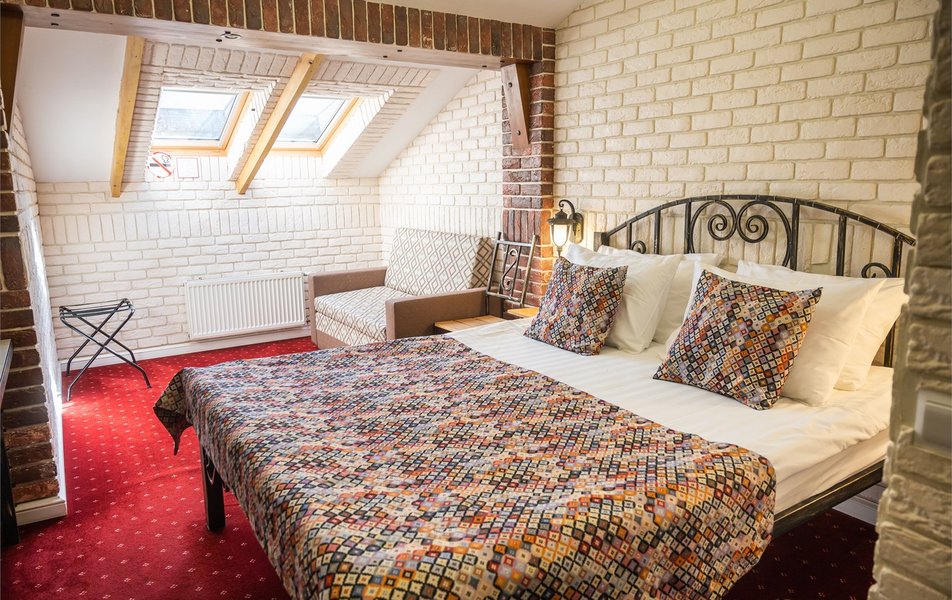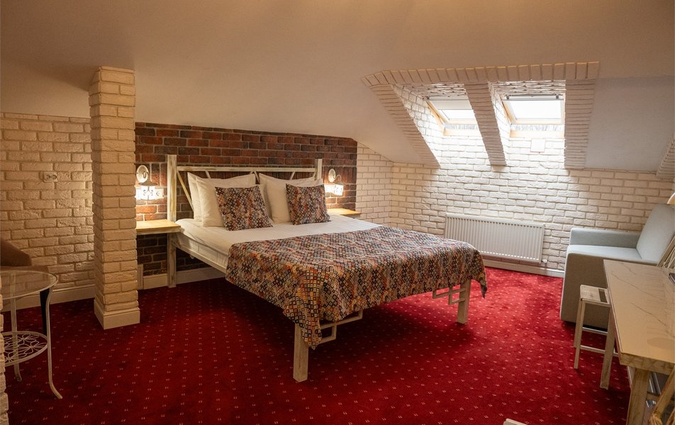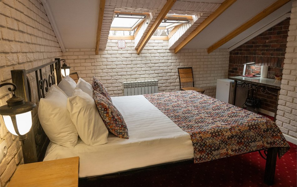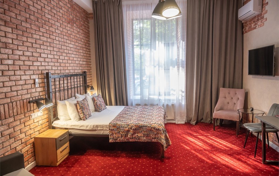 Здание отеля имеет два этажа. Интерьер номеров отличается продуманным дизайном, где сочетаются уют и функциональность. В каждом номере предусмотрены необходимые удобства: санузел, телевизор и кондиционер, что позволяет гостям чувствовать себя комфортно в любое время года.