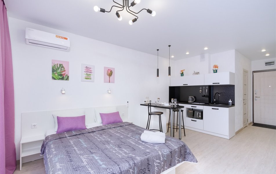 | Оборудование | микроволновая печь набор посуды плита электрическая телевизор холодильник чайник |