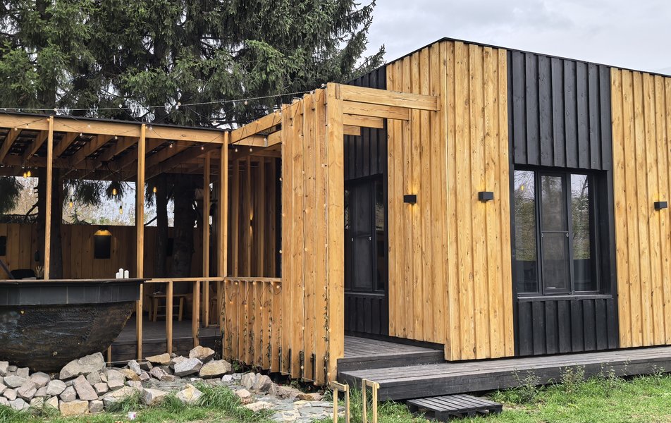 Для отдыха и релакса гостей предлагается баня с возможностью выбора режима парной или сауны, вениками и вместительным банным чаном рядом с домом. На огороженной территории установлены открытый гриль, мангал и казан для приготовления блюд на огне, а также обустроена крытая терраса - идеальная для отдыха в приятной компании.