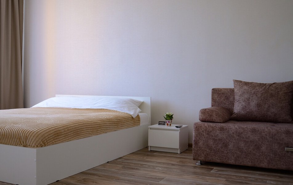 К размещению предлагаются уютные однокомнатные апартаменты, большая двуспальная кровать и раскладной диван, для комфортного размещения 4 человек. Смарт-телевизор для любимых фильмов и сериалов, просторный шкаф для хранения вещей, две прикроватные тумбочки, интернет Wi-Fi, а также совмещенный санузел с большой и удобной ванной , стиральной машиной и полным набором полотенец и средств личной гигиены.
