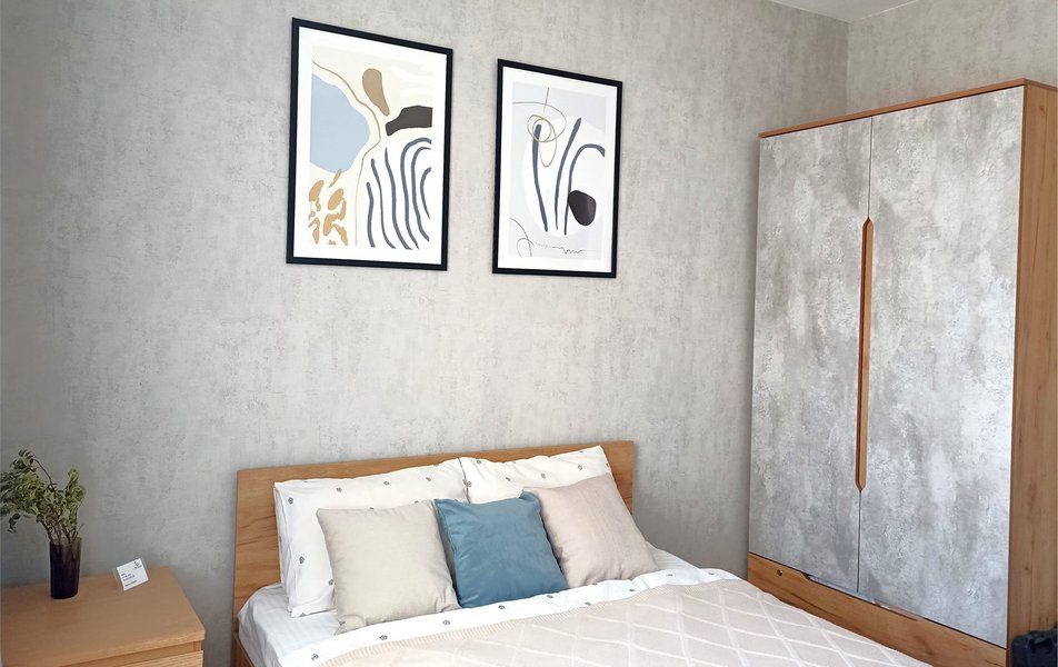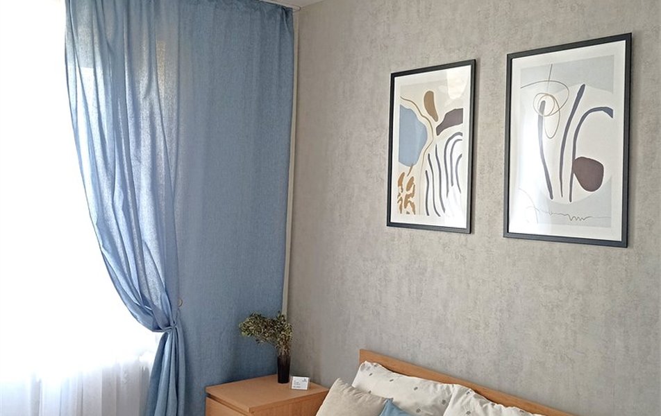 В апартаментах предусмотрено размещение до четырёх человек. Здесь есть две изолированные комнаты: в спальне — двуспальная кровать с ортопедическим матрасом, в гостиной — качественный раскладной диван. Для комфорта гостей оборудовано всё необходимое: современный кухонный гарнитур с холодильником, плитой, стиральной машиной и полным набором посуды, а также обеденная зона с четырьмя табуретами. В ванной комнате установлен накопительный водонагреватель, есть фен, банные полотенца и туалетные принадлежности. В каждом помещении предусмотрены удобные места для хранения вещей, а для работы или учёбы — рабочий стол с лампой и стул. В апартаментах поддерживается чистота и порядок, гостям предоставляются постельное бельё, одеяла и подушки. Для удобства доступен Wi-Fi и кабельное телевидение, а приятным дополнением станут чай, кофе и кухонная утварь.