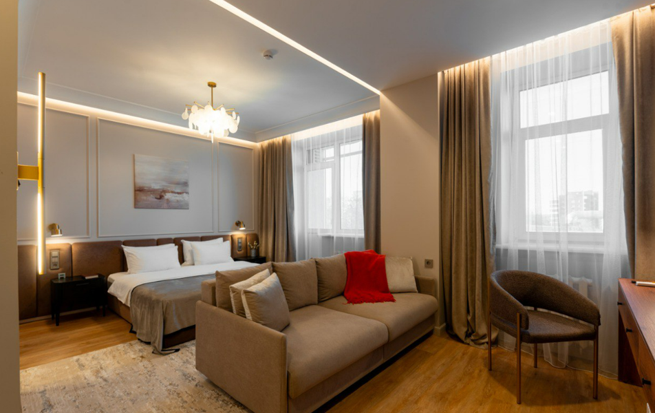 Номера, выполненные в современном стиле, предлагают гостям все необходимое для комфортного отдыха и продуктивной работы. Просторные комнаты, удобные кровати, современная техника и бесплатный Wi-Fi – лишь малая часть того, что позволяет гостям чувствовать себя непринужденно, как дома. Особое внимание уделяется чистоте и порядку, что создает атмосферу уюта и спокойствия.