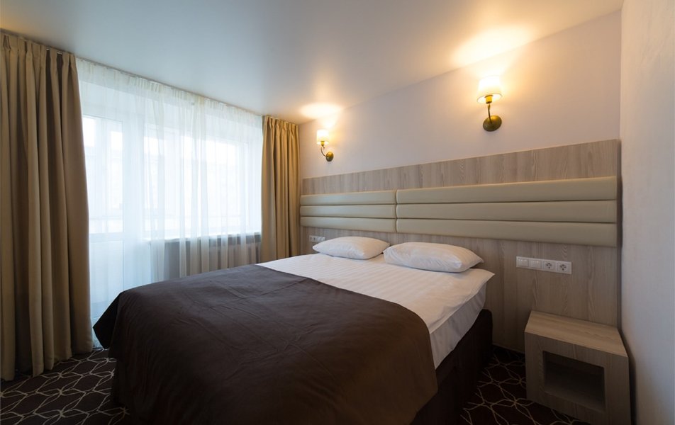 Отель занимает шестиэтажное здание с двумя лифтами и небольшой охраняемой территорией. В гостинице 120 номеров различных категорий и вместимости (от 1 до 3 проживающих) с одно- или двуспальными кроватями. Комнаты оснащены всем необходимым для комфортного размещения: мебелью, техникой, санузлами, туалетно-косметическими принадлежностями.