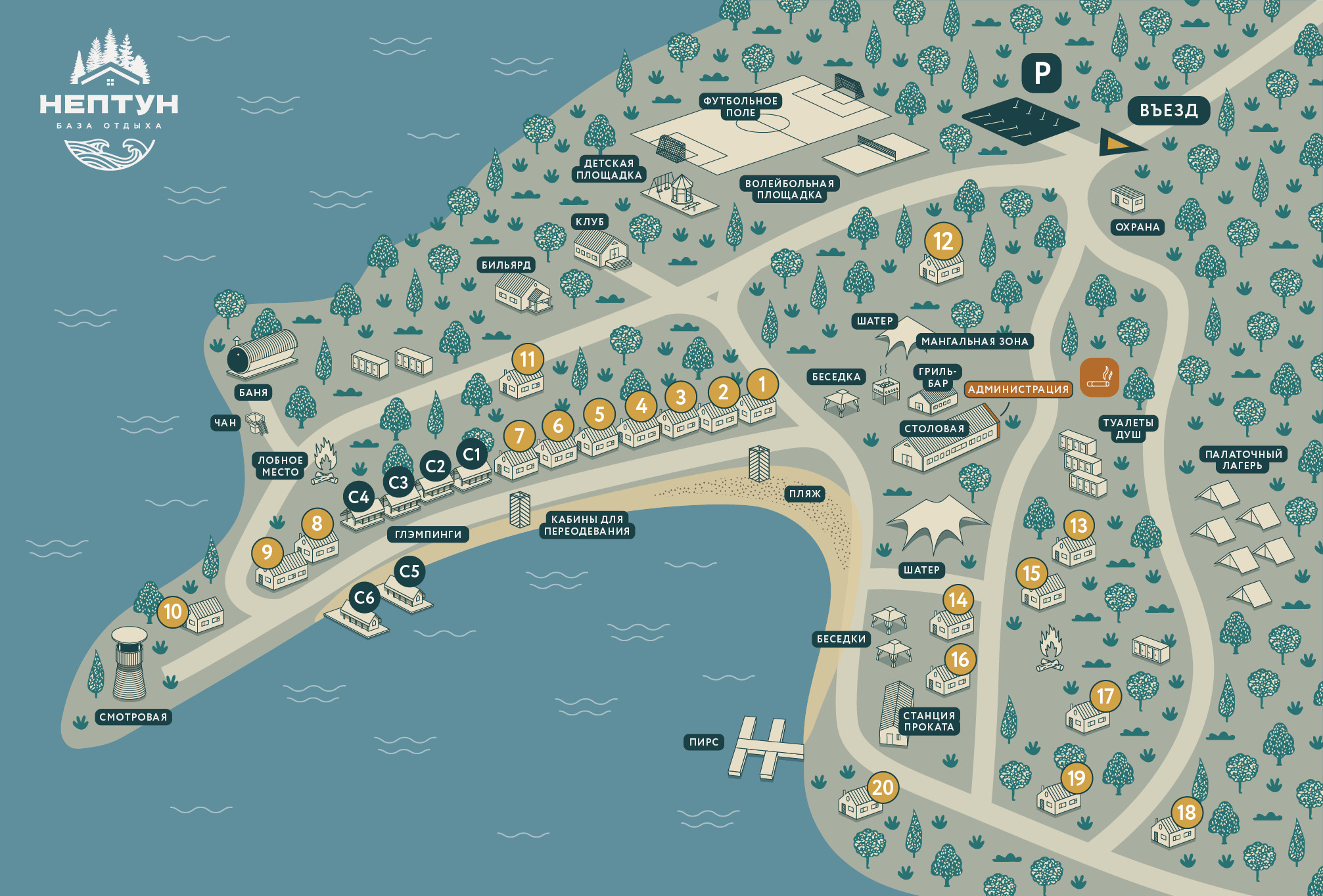 Жизнь на «Нептуне» никогда не бывает скучной, ведь она меняется вместе с временами года, каждый раз даря гостям новые впечатления. В летний зной бескрайняя гладь озера манит к себе, обещая прохладу и приключения: прогулки на лодках открывают удивительные, потаенные виды и позволяют почувствовать себя первооткрывателем этих тихих мест. Когда же земля укутывается в белоснежное одеяло, база превращается в зимнюю сказку. Веселые спуски на тюбингах, размеренное скольжение лыж по целине и, конечно, завораживающее тишиной хобби — зимняя рыбалка, где каждый улов становится маленькой победой. А после долгого дня, проведенного на свежем воздухе, приятно погрузиться в жаркую купель бани или горячего чана под открытым небом, наблюдая за танцем снежинок и мерцанием звезд.