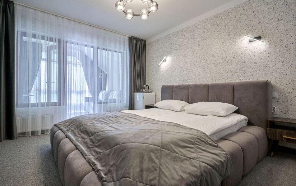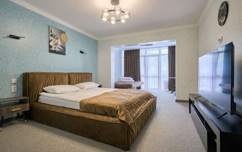 Номера базы отдыха оформлены в уютном стиле с использованием экологически чистых материалов. Гостей ждут удобные кровати и телевизоры, а также Wi-Fi для комфортного пребывания. С балконов, оборудованных столиками и стульями, открываются прекрасные виды на окружающую природу. На территории базы работает кафе, в котором подаются вкусные и разнообразные завтраки. На свежем воздухе есть мангальные зоны, а также беседки для отдыха в компании друзей. Отдыхающим предлагается попариться в банном комплексе с бассейном.