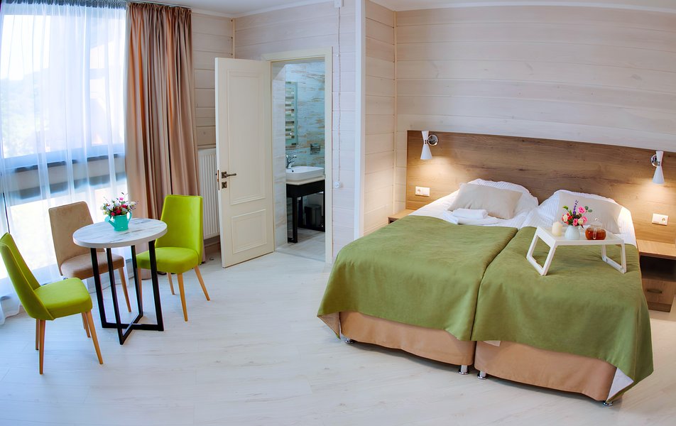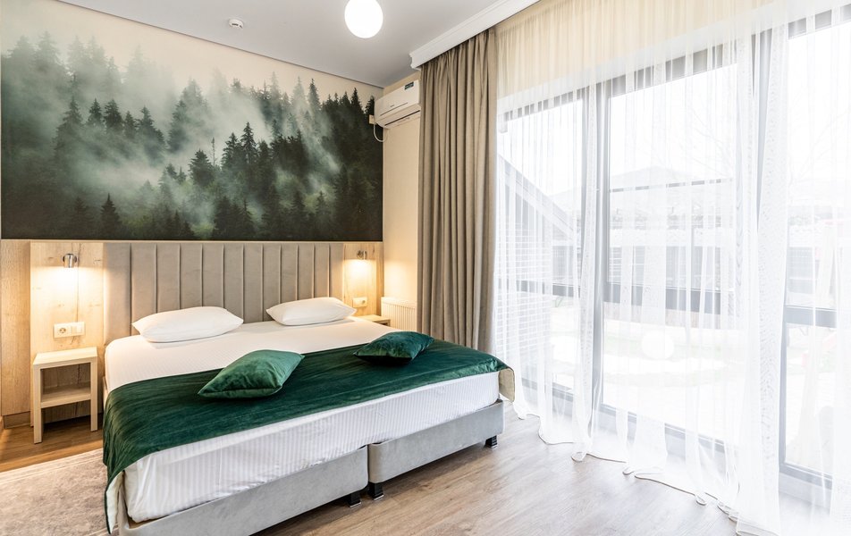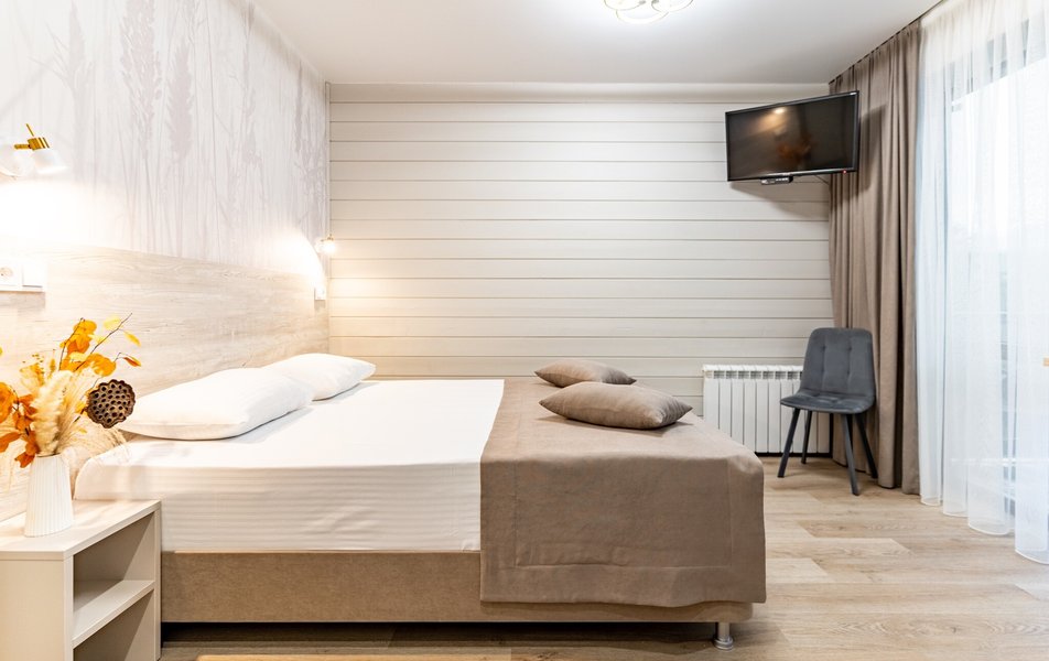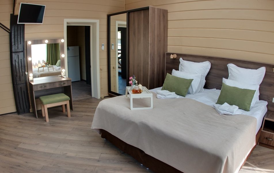 «Терем у реки» расположился в живописном посёлке Каменномостский, неподалёку от села Даховское — одних из самых популярных туристических мест в Адыгее. Гостевой дом находится в глубине края, где река Белая медленно протекает между зелёными лесами, а из каждого окна открываются виды на горные вершины и тихую водную гладь. В пешей доступности от отеля нет шумных магистралей, зато рядом — уникальные термальные источники, где можно восстановиться после насыщенного дня. В самом посёлке легко найти магазины и кафе, а для прогулок и знакомства с природой достаточно просто выйти за порог.