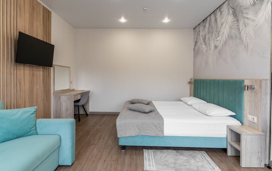 | Оборудование | микроволновая печь мини-холодильник плита электрическая телевизор ЖК чайный набор посуды электрочайник |