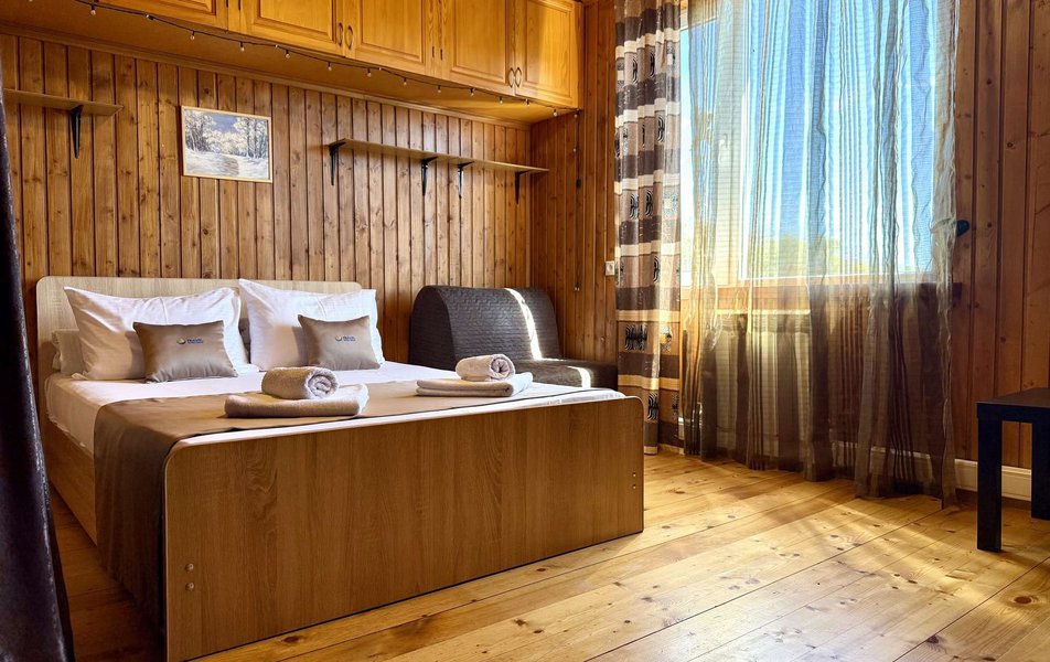 Дополнительно предлагается приятно провести время в просторной или небольшой бане с холодным или теплым купелем. Гостям предоставляется парковка для автомобилей. На территории есть открытый бассейн. Провести запоминающийся вечер можно в приятном кругу друзей в беседках с мангалом. Для детей предусмотрена игровая площадка.