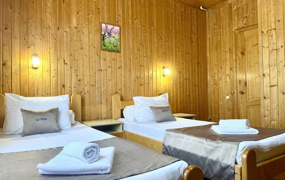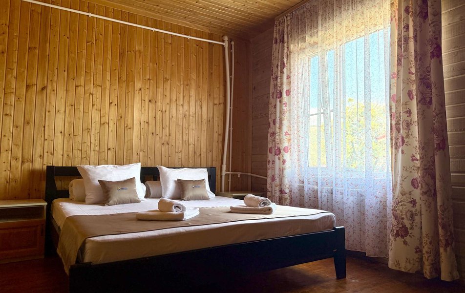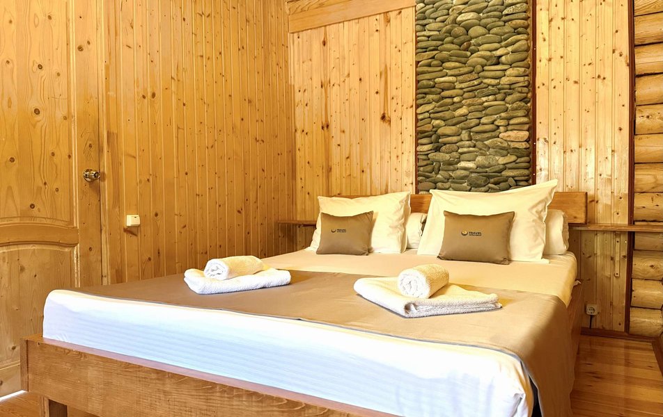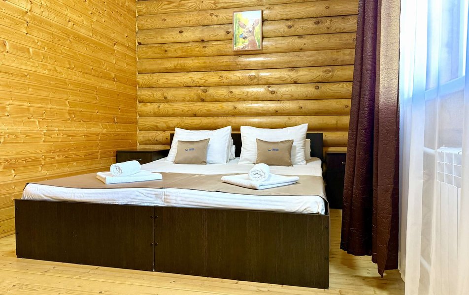 Деревянные коттеджи и номера оснащены двуспальными кроватями, телевизорами и собственными душевыми комнатами. Wi-Fi позволяет оставаться на связи с близкими. Также имеются номера с кухнями и просторный дом с кухней-столовой для компаний от 10 человек. В номерах с кухней гости могут воспользоваться холодильником, электрическим чайником, варочной панелью и посудой.