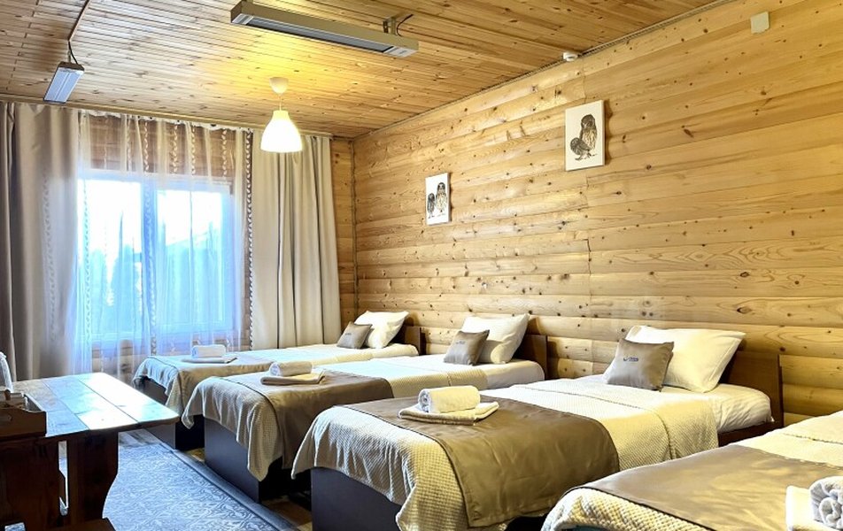 В распоряжении гостей — кухня-столовая для кулинарных экспериментов, бильярдная для отдыха, детская площадка и уютные беседки с мангалом. Вечера здесь наполнены ароматами костра, смехом и звёздами, а дни — исследованием живописных троп Адыгеи. «Сова» дарит не просто отдых, а возможность парить над суетой, сохраняя связь с земным уютом.
