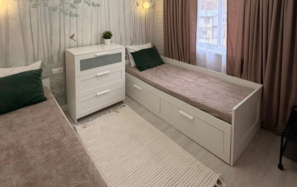 | Мебель | диван раскладной комод кровати односпальные: 2 шт. кровать двуспальная кухонная мебель прикроватные тумбочки столик журнальный |