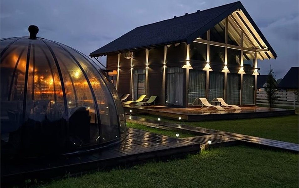 Двухэтажный коттедж, рассчитанный на проживание до десяти человек, разместился на территории комплекса «Альпинс резиденс». Интерьер дома выполнен с использованием натуральных эко-материалов, продуман до мелочей и наполнен светом благодаря панорамным окнам. Внутри — четыре спальни с двуспальными кроватями, просторная гостиная, объединённая с кухней, полностью укомплектованной современной техникой, посудой и столовыми приборами. Для удобства гостей предусмотрены кондиционер, телевизор, посудомоечная и стиральная машины, а в ванной комнате — тёплый пол, душевая кабина, фен и средства гигиены. На всей территории работает Wi-Fi. С террасы с удобными шезлонгами открывается прекрасный вид, располагающий к отдыху.