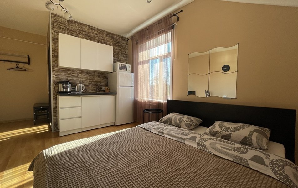 Конфигурация квартир различается: некоторые из них оборудованы собственной функциональной кухней или кухонным уголком с необходимой техникой, что позволяет гостям готовить самостоятельно, экономя время и бюджет. В других вариантах акцент сделан на максимально комфортную организацию спального и рабочего пространства. Это позволяет каждому гостю выбрать вариант, в наибольшей степени соответствующий его планам — будь то длительное проживание с самостоятельным приготовлением пищи или короткая туристическая поездка.