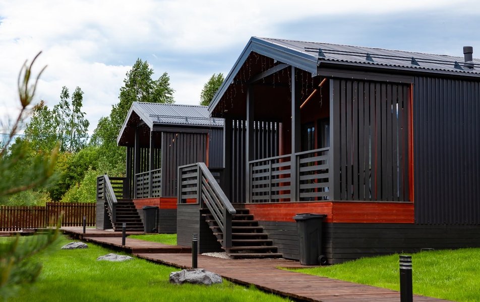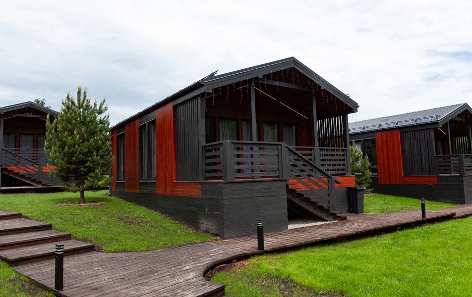 Комплекс представляет собой камерное пространство из десяти уютных одноэтажных деревянных домиков, расположенных на ухоженной благоустроенной территории среди сосен. Каждый коттедж выполнен в современном стиле и включает две отдельные спальни для комфортного сна, просторную кухню-гостиную для общения с семьей или компанией друзей, а также террасу на свежем воздухе. Санузел оборудован душевой кабиной и стиральной машиной, гостям приготовлены предметы гигиены, фен, халаты и тапочки, чтобы они чувствовали себя как дома.