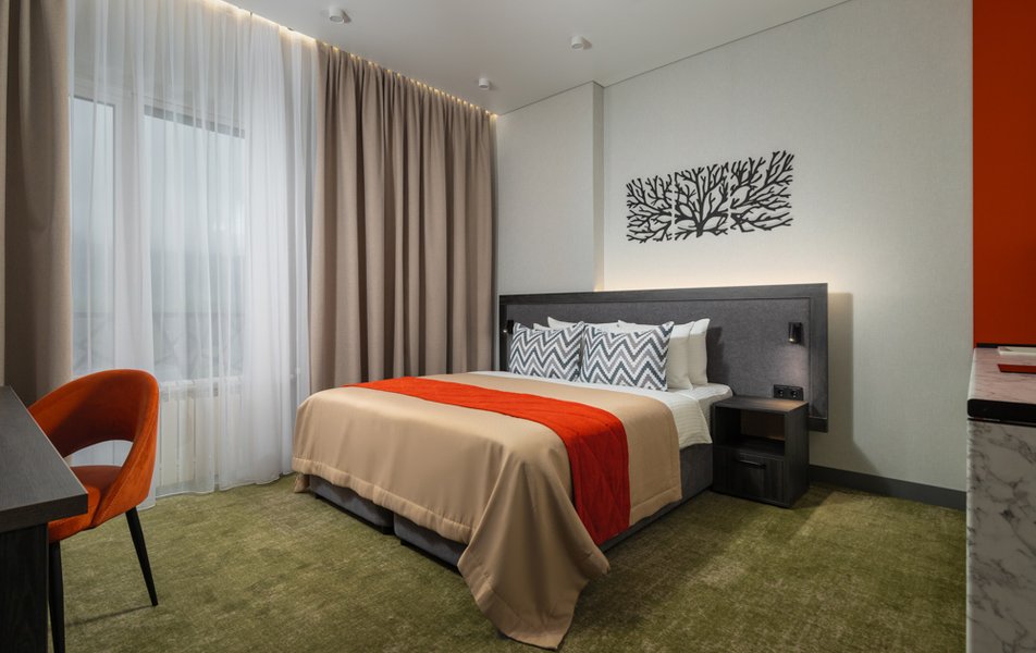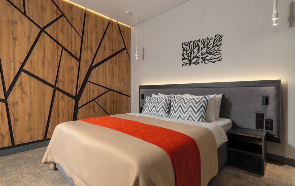 Отель включает в себя два корпуса – Скала и Горный. Жилой фонд состоит из 33 однокомнатных и двухкомнатных номеров со стильными дизайнерскими интерьерами. В каждом номере предусмотрен персональный санузел с душем, телевизор, электрочайник, фен. Номера повышенной комфортности оснащены мини-кухней. В комнатах имеются балконы, откуда открываются завораживающие виды на горы.