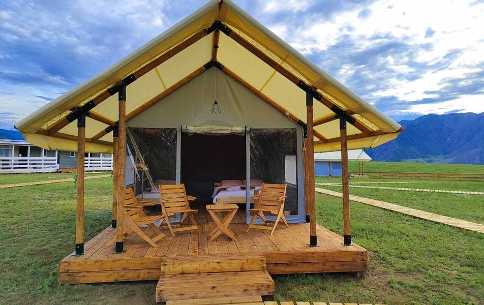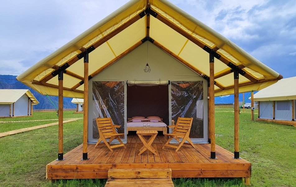 Для размещения кемпинг предлагает уютные двух- и трехместные тентхаусы, установленные в горной долине. Каждая палатка оснащена круглосуточным освещением, теплыми простынями и имеет собственную террасу с креслами. Горячее и холодное водоснабжение, а также душевые кабины и туалеты обустроены в отдельных санитарных блоках на территории.