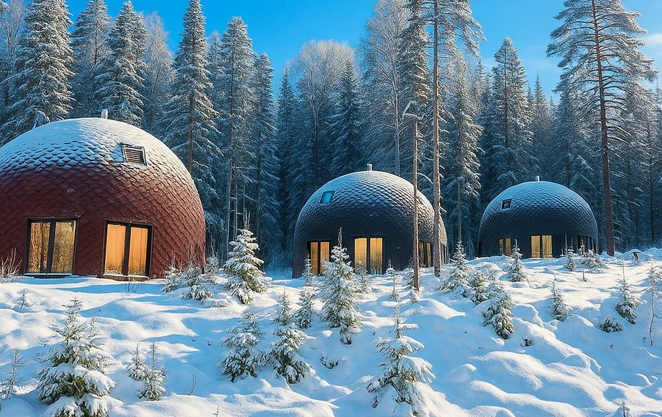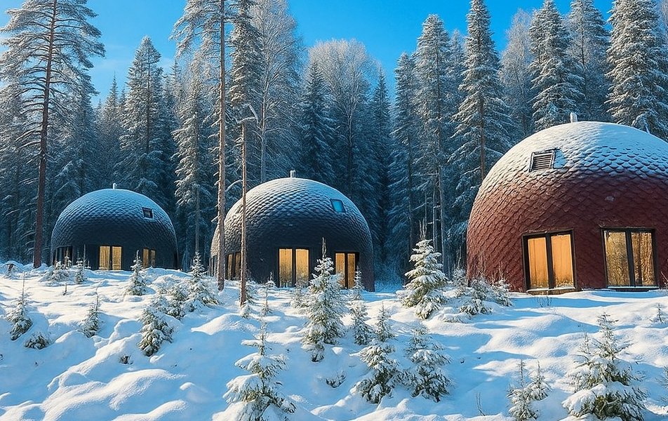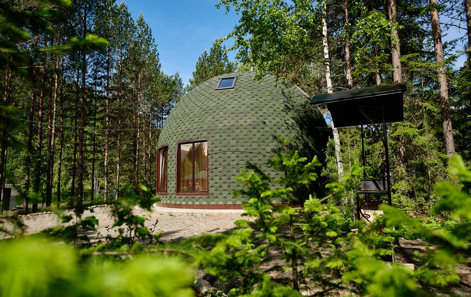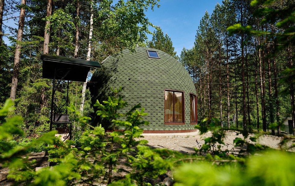 Гостям предлагают на выбор несколько вариантов размещения: уютные купольные дома - однокомнатные на двоих человек и просторные двухэтажные, отлично подходящие для семейного отдыха или компании друзей, а также оригинальные модульные дома со встроенными шкафами-кроватями.