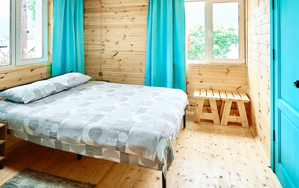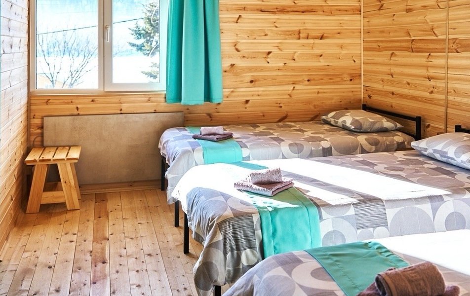 Комплекс состоит из трех деревянных корпусов круглогодичного и сезонного проживания в 2 и 3 этажа. В основном корпусе на 7 номеров часть номеров оснащена балконами с видом на озеро и перевал Корбу. Жилые комнаты отличаются кроватями – есть номера как с раздельными, так и в двуспальными. В каждом номере свой санузел с душем. Также имеются два летних домика с двумя спальнями и гостиными с диванами. Домики могут принять семью или компанию до 6 человек.
