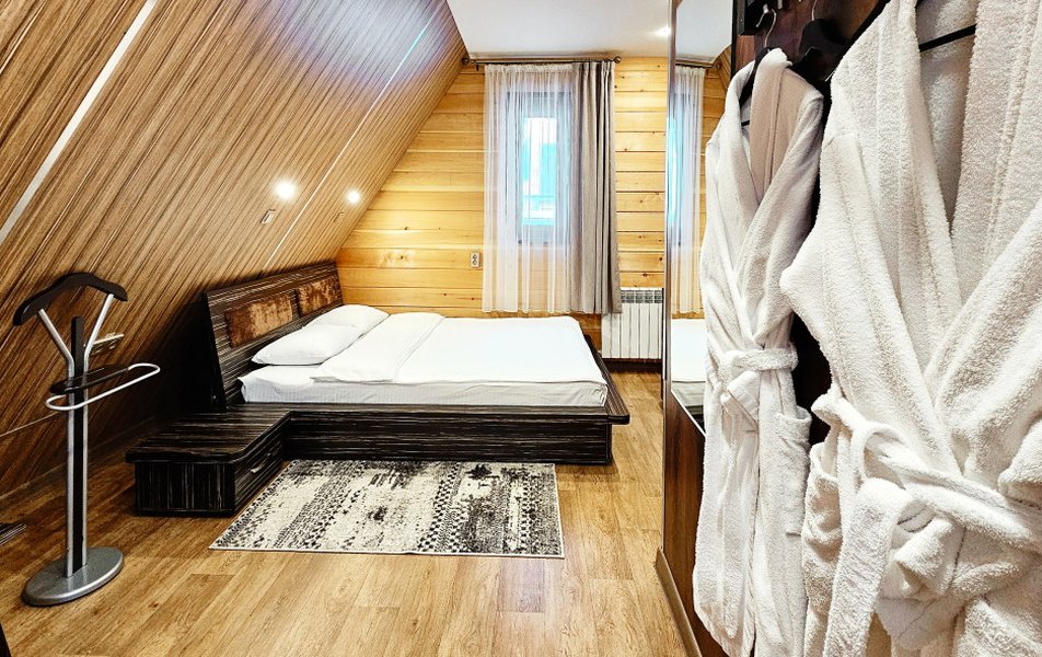 Комплекс включает в себя 33 комфортабельных шале, в каждом доме две спальни с двуспальными кроватями, гостиная с просторной зоной отдыха, персональный санузел с душем и косметическими принадлежностями для отдыхающих.