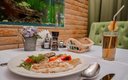 Для гостей отеля работает ресторан. Уютный интерьер, панорамные окна, разнообразное меню и большой выбор блюд башкирской кухни придутся по вкусу всем. Завтрак сервируется по системе «шведский стол».