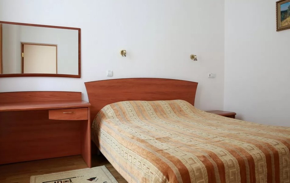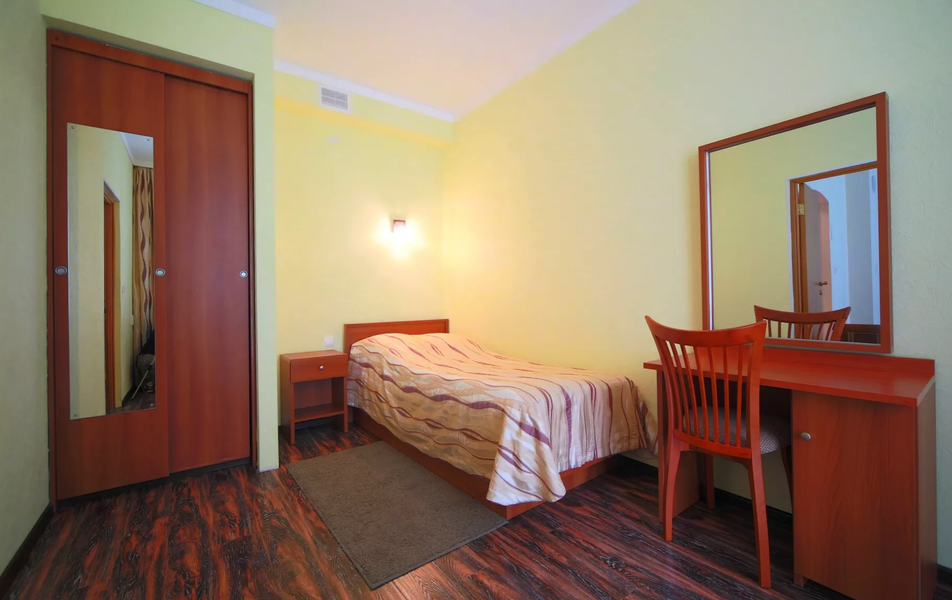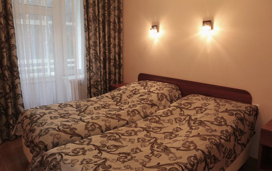Для размещения предусмотрено 9 корпусов разной вместимости. Корпуса 1,4 – 4-этажные; 2,3 – 3-этажные; 5,6 – 5-этажные; 7-ой – 6-этажный; 8,9 – 2-этажные. Все они являются отдельно стоящими, лишь корпус №3 соединен теплым переходом с лечебно-физкультурным комплексом. Лифтом оснащены корпуса №5, 6, 7. В корпусе №2 расположено врачебное отделение. Оснащение номеров зависит от категории. Но даже эконом-класс предусматривает необходимый набор удобств. Wi-Fi доступен в холлах корпусов, на территории, в большей части номеров.