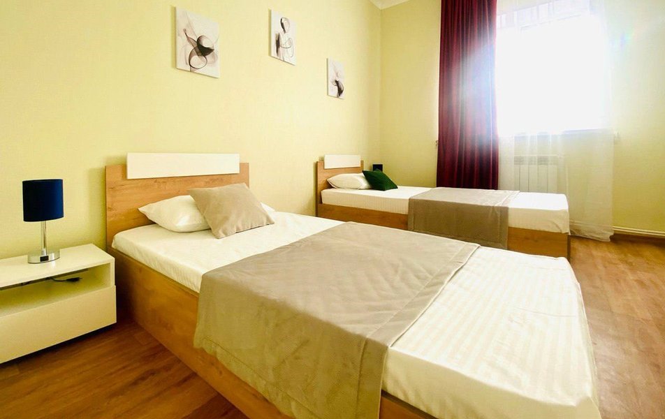 Апартаменты на 8 номеров разместились в 3-этажном здании и предлагают бюджетные варианты размещения. При этом в каждом номере есть все необходимое для проживания. Установлены удобные раздельные или двуспальные кровати, мини-холодильник и ЖК-телевизор. В персональном санузле – душ, предметы гигиены, есть фен.