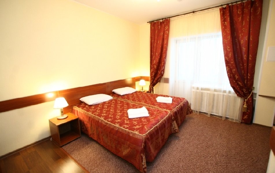 Самолётом до а/п г. Уфа, далее автобус №110 от ост. «Аэропорт» до ост. «Железнодорожная больница», далее пешком 330 м до отеля.