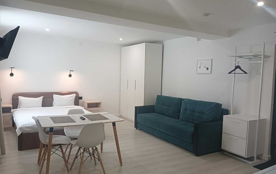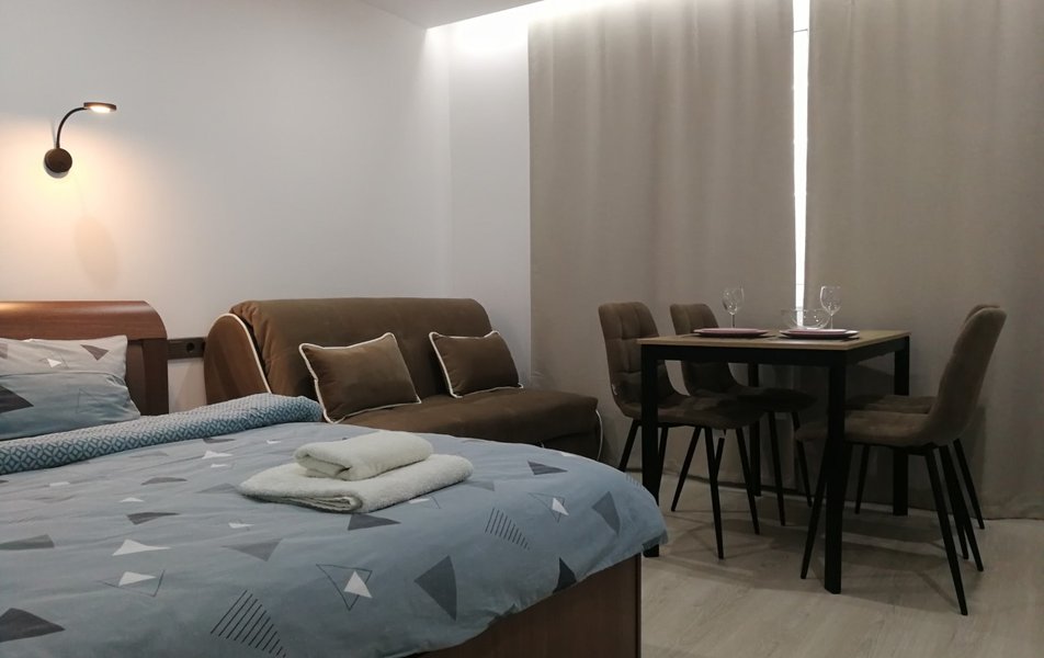 В апартаментах представлены несколько категорий — от студий Standard до более просторных студий Comfort и номеров «Люкс» — оснащённых встроенной мини-кухней с холодильником, микроволновкой и чайником, а также современной техникой: телевизор, фен, стиральная машина.