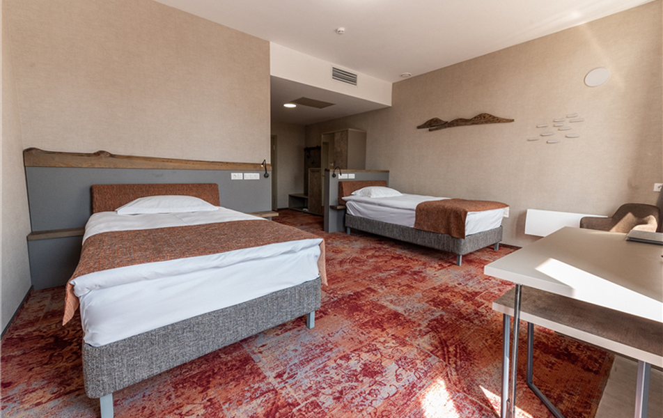 Трехэтажный современный корпус отеля разместился на улице Лимонова напротив парка. К услугам гостей 2-местные номера Twin и Double со всеми удобствами, а также Апартаменты с собственной кухней и балконом. В каждом номере имеется санузел с душем, где для отдыхающих подготовлены косметические наборы, уютные халаты и тапочки. В комнатах есть плазменный телевизор, кондиционер, доступен беспроводной интернет.